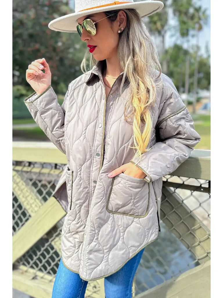 Refresh your outerwear collection with this effortlessly stylish quilted jacket, designed for comfort and versatility. The lightweight construction and oversized fit make it a go-to layering piece for transitional weather and casual days out.