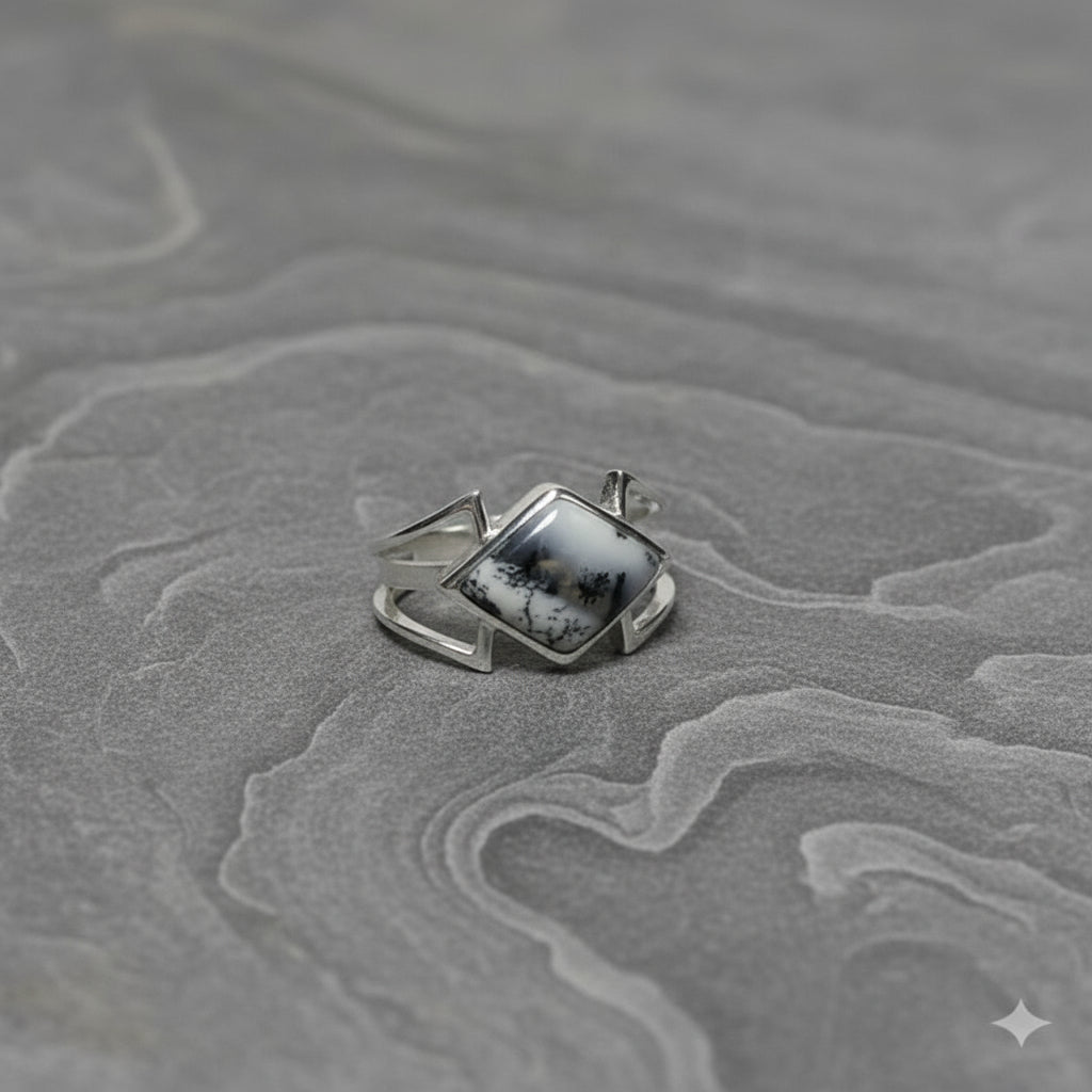 Dendritic Opal Square Ring