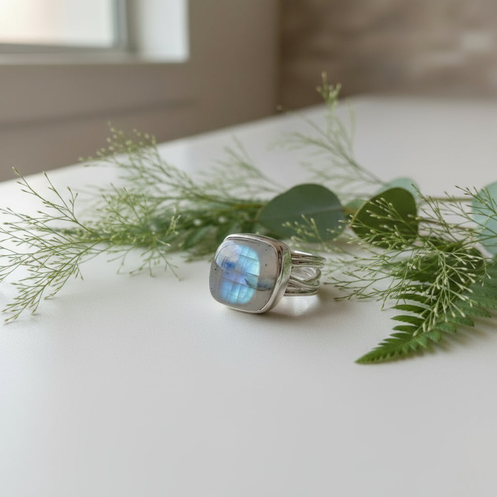 Moonstone (Rainbow) Thick Band Ring